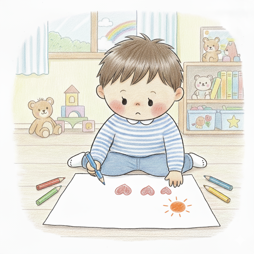 そして、ゆうちゃんが何よりも大好きなのは、クレヨンでお絵描きをすることでした。